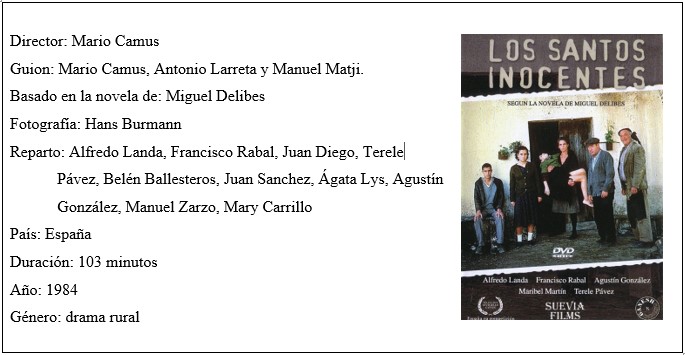 Nos encontramos ante la Extremadura rural y caciquil de los años setenta donde esta adaptación de la novela homónima de Miguel Delibes (1981) nos plasma la vida de una familia de campesinos en una situación de sumisión y opresión, ante los señoritos y dueños de la finca en la que trabajan. Régula, su marido Paco «el bajo» y su hermano Azarías, van a vivir en unas chabolas donde comparten espacio con los animales, una situación de servidumbre desde una estratificación social jerárquica propia de una tiranía donde, como herencia del régimen franquista, se va a imponer los conceptos de obediencia y autoridad por encima de todo. Así pues, con este filme se trata de transmitir, al igual que ocurría en The Stanford Prison Experiment (Kyle Patrick, 2015), la maldad a la que pueden llegar ciertas personas, destrozando vidas ajenas por poder y/o capricho, como ocurre con el personaje de Iván.