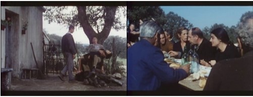 Los títulos, tanto los iniciales como los finales están plagados, al igual que diversas secuencias del filme, de numerosa simbología, encontrando, por ejemplo, en el opening esa alegoría con la liberación con la que cuentan la propia figura del pájaro, lo cual se contrapone directamente con los iniciales y con la figura del búho encerrado. Dentro de este simbolismo hay que señalar ciertas referencias que me han llamado la atención como son aquella que vinculan directamente a Azarías y a “la niña chica” -la cual sufre una enfermedad que la paraliza- con la figura de La Piedad (Miguel Ángel, 1498), la cual sujeta la figura de Jesús sin vida, lo cual guarda estrecha relación con la composición que encontramos en el filme plagada de devoción y sentimiento. De igual manera, encontramos también cierta intertextualidad entre la escena de banquete del filme con la que ocurre en la obra fílmica Viridiana (Luis Buñuel, 1961), lo cual se relaciona directamente con la simbología religiosa, pretendiendo así, cierta contraposición simbólica con la que Camus pretende lanzar significados.