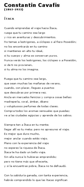 Ítaca es aquello a lo que aspiramos, el camino siempre será duro, pero aprendemos, disfrutamos en su justa medida y seguimos adelante para llegar hasta allí.