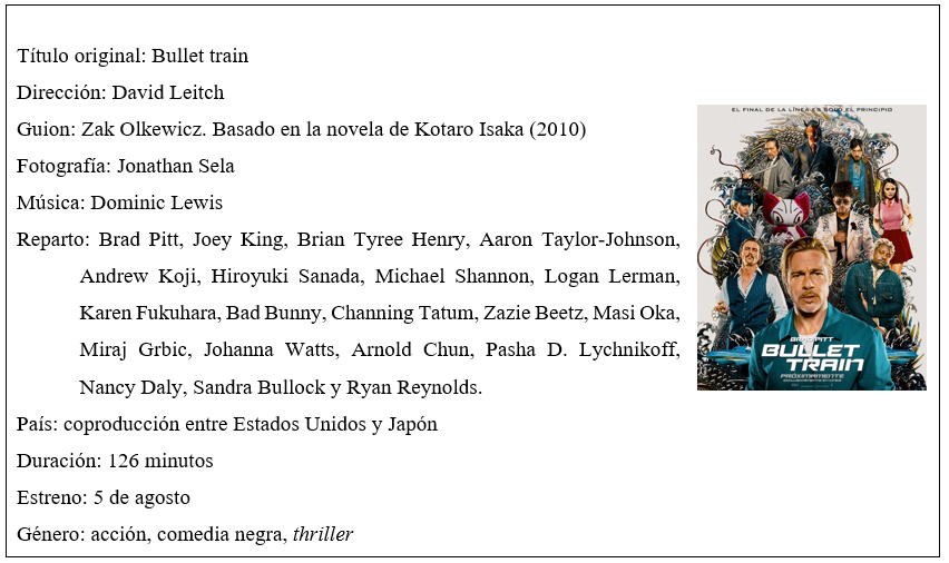 Esta entretenida película dirigida por el también actor y productor David Leitch -lo recordamos de obras como John Wick (2014 junto con Chad Stahelski), Atomic Blonde (2017), Deadpool 2 (2018) o Fast and Furious: Hobbs & Shaw (2019)-, se estrenó el pasado verano pero sigue aún en cartelera para dejarlos contemplar este festival de muertes y destrucción. Su guion, creado por Zak Olkewicz, está basado en la novela Maria Beetle (2010) de Kōtarō Isaka -escritor japonés de best-sellers apenas conocidos en Occidente especializado en el género de misterio y acción- y también contó con una versión teatral en 2018, pero finalmente llegó el blockbuster del verano.