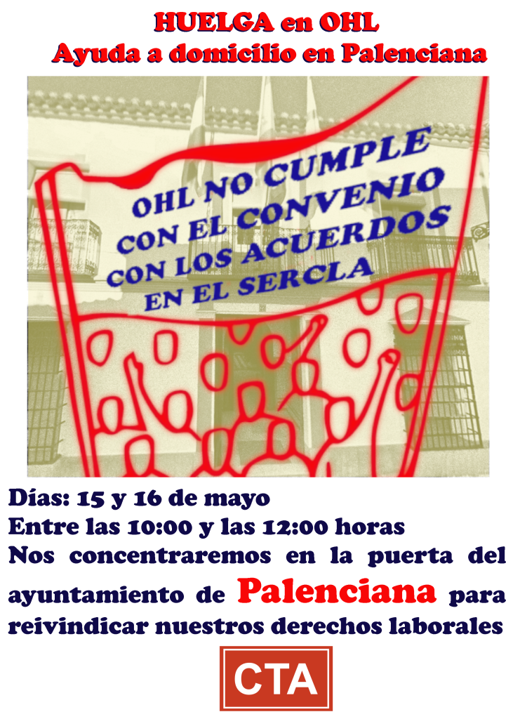 Ante los graves incumplimientos del convenio colectivo del Servicio de Ayuda a Domicilio y los acuerdos alcanzados en el SERCLA (Sistema Extrajudicial de Resolución de Conflictos Laborales en Andalucía) entre las trabajadoras de OHL, ayuda a domicilio en la localidad de Palenciana, y la empresa; C.T.A. (Coordinadora de Trabajadores de Andalucía) convoca esta manifestación.