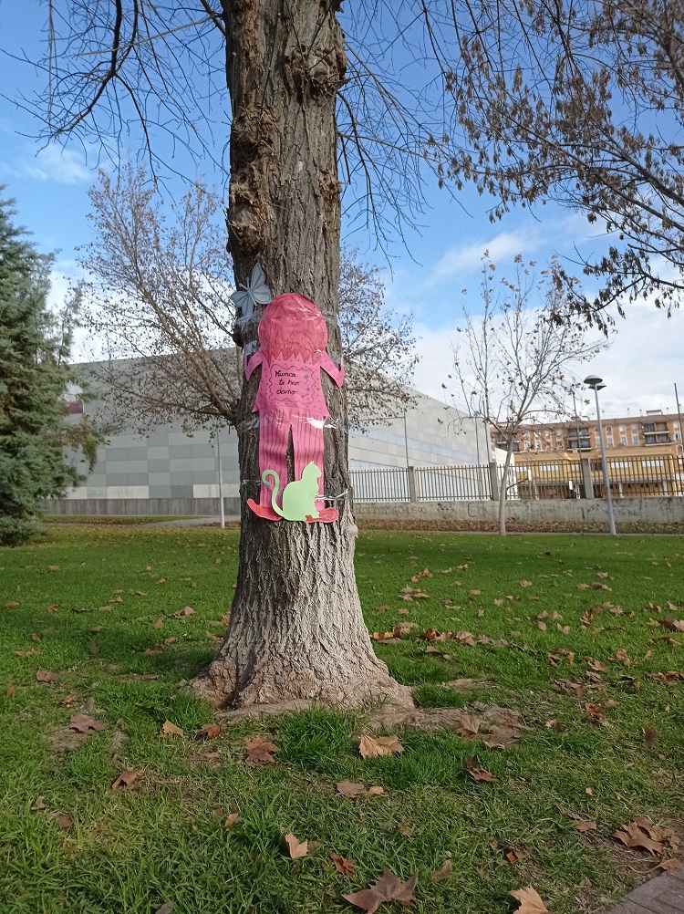 La Asociación Vecinal Diana se ha congratulado ante la aparición de numerosos carteles y dibujos colgando de los árboles del barrio con mensajes para cuidarlos y alabando la función que hacen en la ciudad.