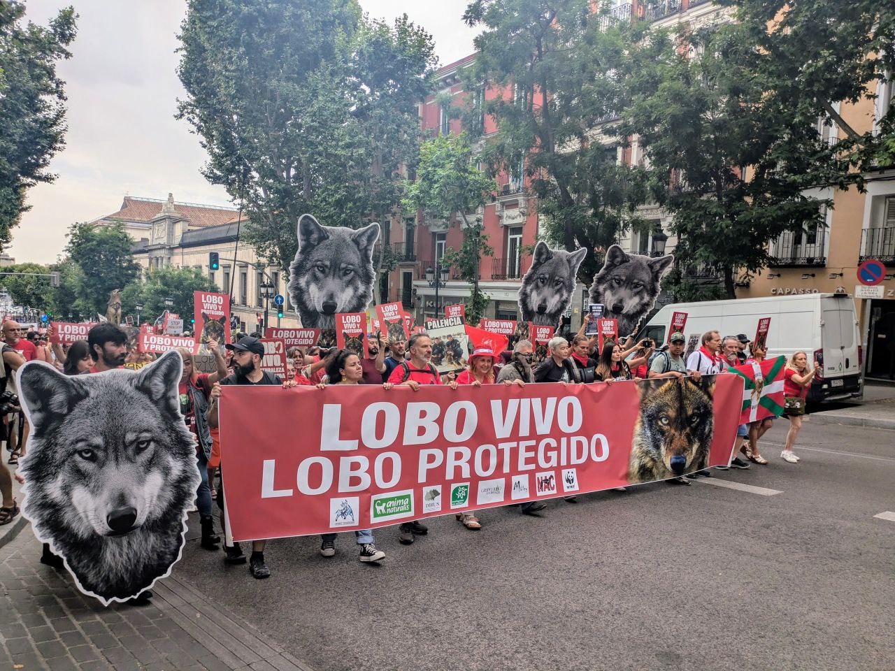 La manifestación ha sido convocada por las entidades Animal Guardians, AnimaNaturalis, Dirus, Ecologistas en Acción, Grupo Lobo Asturias, Lobo Marley, NAC y WWF y ha contado con el respaldo de 170 organizaciones de la sociedad civil, que han instado a la ciudadanía a sumarse y hacer oír la voz —y el aullido— del lobo en cada rincón de España.