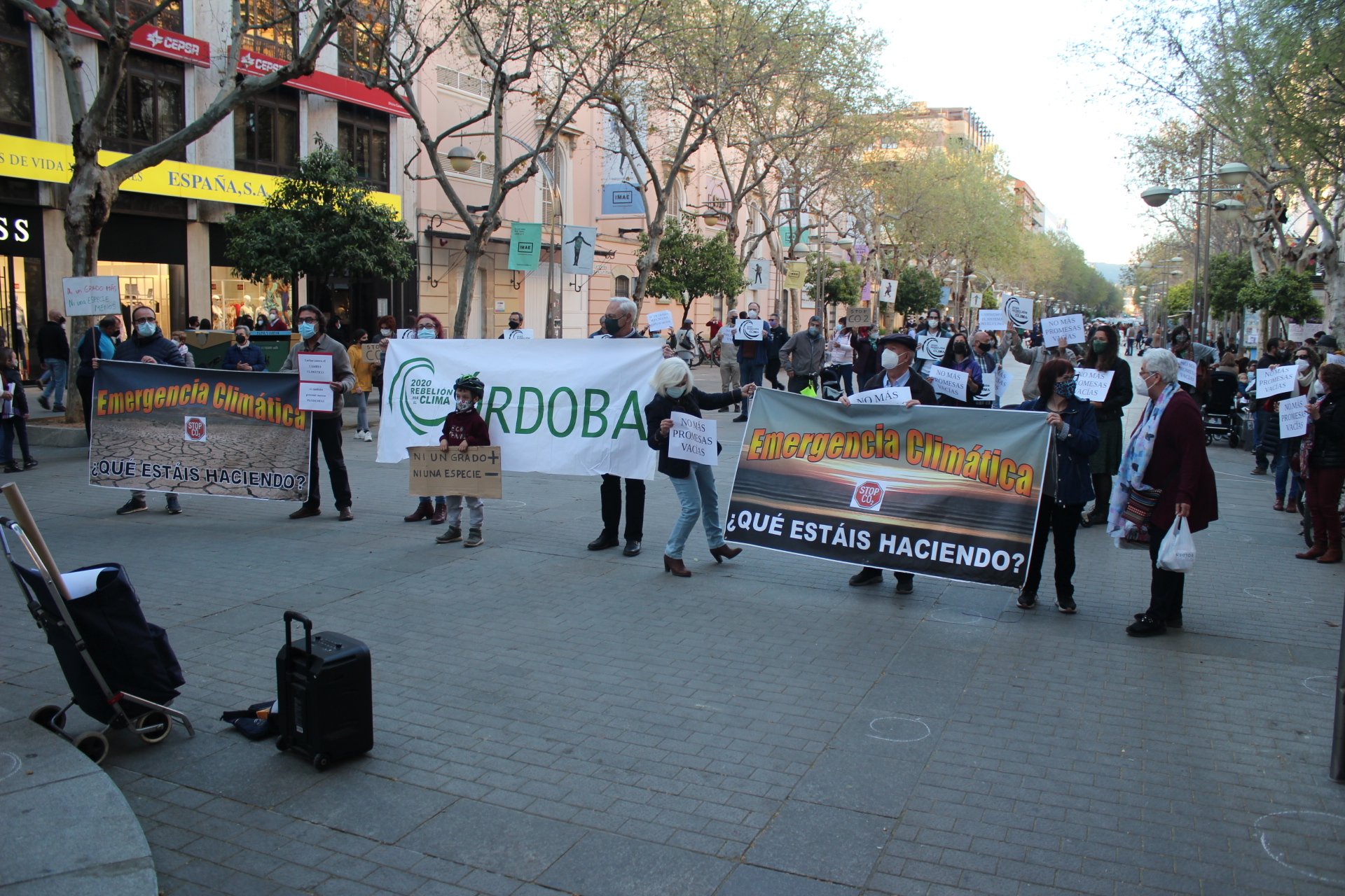 Dentro de la iniciativa Rebelión por el Clima Córdoba, la plataforma Carril Bici y Ecologistas en Acción Córdoba se concentraron ayer viernes, con una participación de unas 80 personas. en el templete del Bulevar del Gran Capitán.