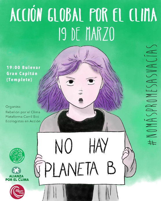 En el marco de la convocatoria estatal promovida por Friday for Future, Alianza por el Clima y Rebelión por el clima, la iniciativa Rebelión por el Clima Córdoba, la plataforma Carril Bici y Ecologistas en Acción Córdoba convocan una concentración el viernes 19 de marzo, a las 19,00 horas en el templete del Bulevar del Gran Capitán.