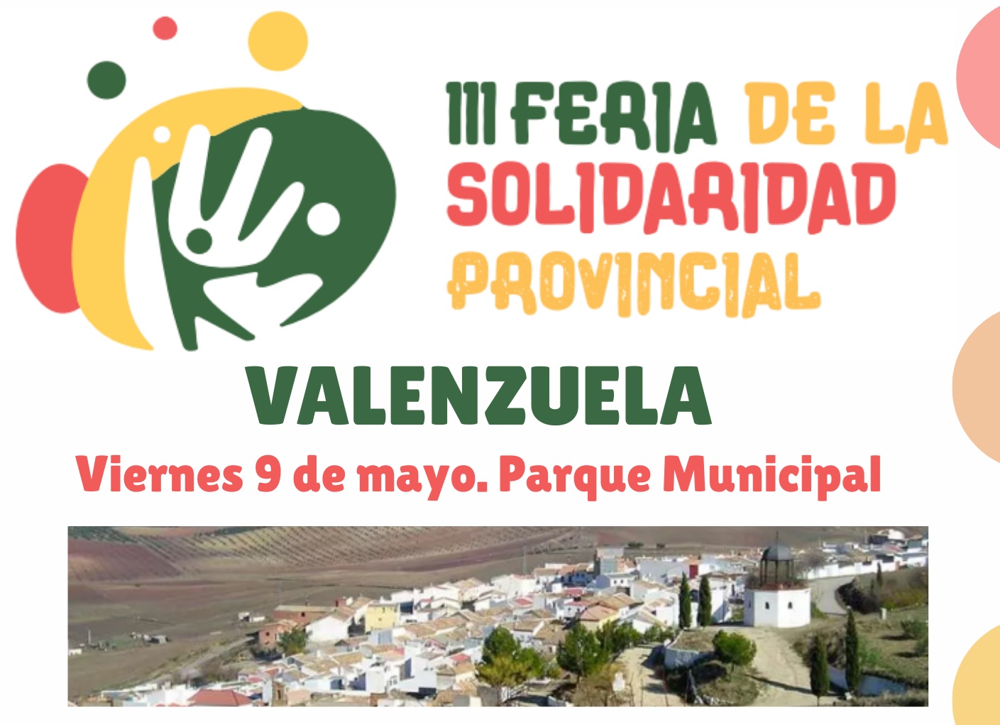 Córdoba Solidaria, con la colaboración de la Diputación de Córdoba y el Ayuntamiento de Valenzuela, celebrará el próximo viernes 9 de mayo la 3ª feria de la Solidaridad Provincial en este municipio de la Mancomunidad de Municipios del Guadajoz y Campiña Este.