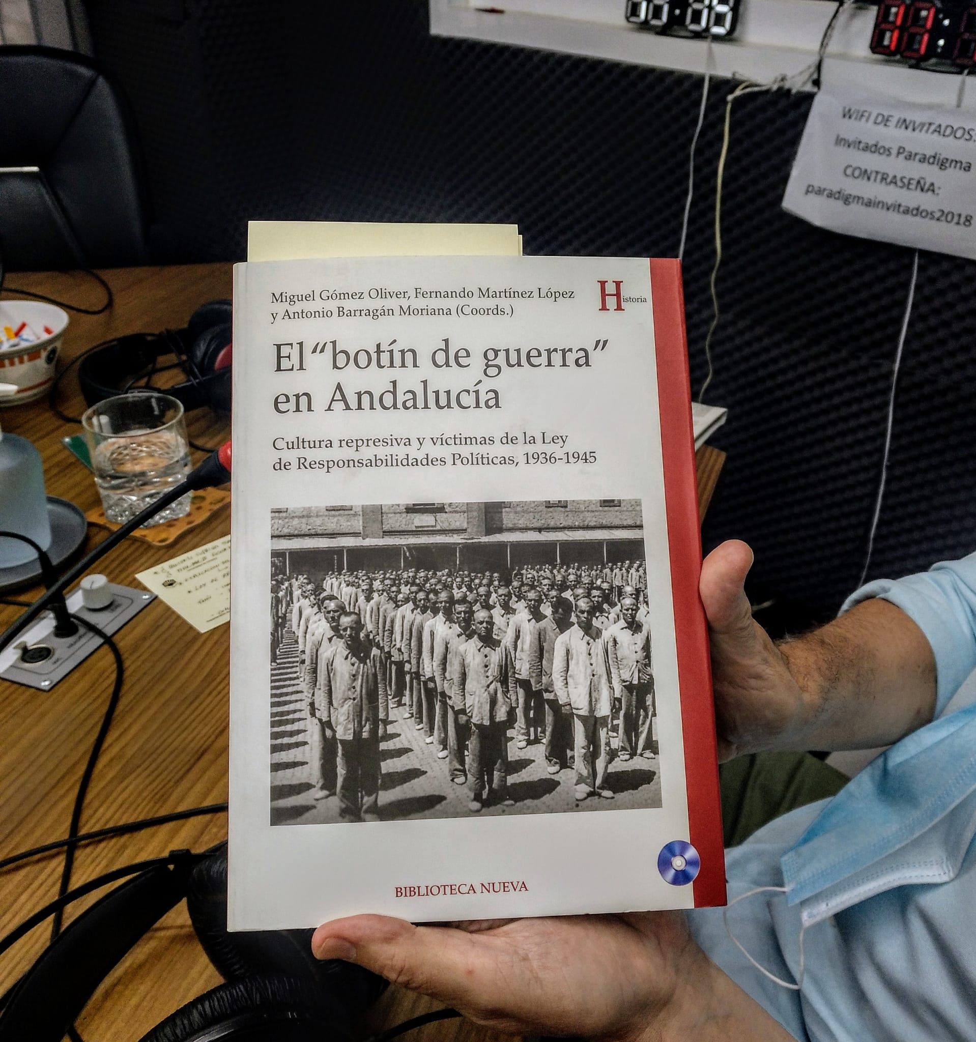 A continuación nos visitó Antonio Barragán, catedrático de Historia de la Universidad de Córdoba, quien nos habla del libro El “botín de guerra” en Andalucía, del cual él ha sido uno de sus coordinadores. Antonio Barragán nos habla del impacto de la Ley de Responsabilidades Políticas que es un tema poco conocido y poco estudiado. Se aprobó poco antes de terminar la guerra, cuando ya el frente está partido y la inminencia de la derrota estaba a la vuelta de la esquina. Ya en su preámbulo se apunta por donde irá la misma. Las tropas coloniales allá por donde van entrando vencedoras, todo lo consideran “botín de guerra”. Serán más de 60.000 familias las afectadas, y además del expolio sufrido en todo el país, serán expropiadas de sus propios bienes. Así que es imposible de calcular el montante de este botín de guerra.