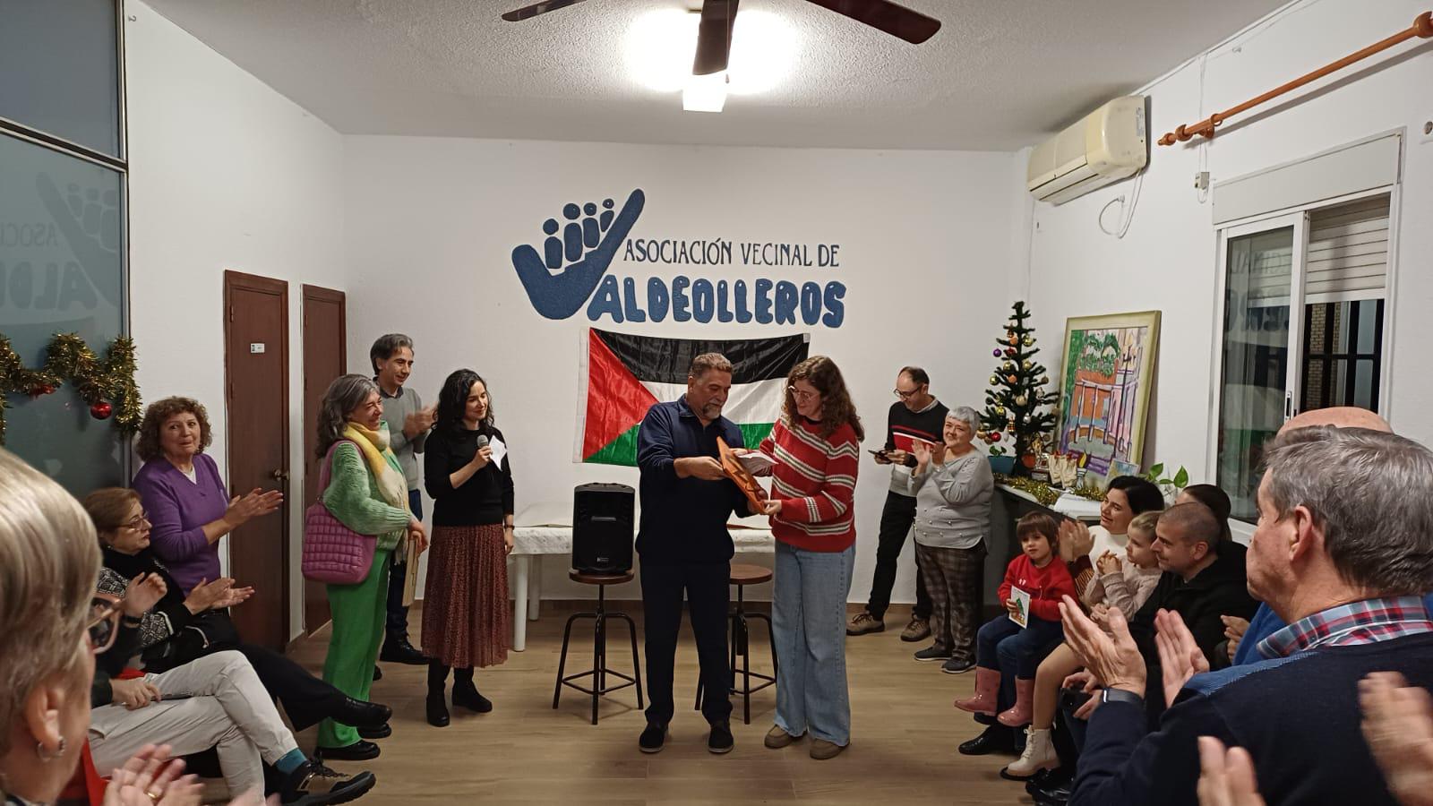 Ayer, 10 de diciembre, la Asociación Pro Derechos Humanos de Andalucía en Córdoba entregó su premio anual a un colectivo sencillo que sabe cuál es su sitio en el mundo. Militante de base y vecinal de apellido, la Asociación Vecinal de Valdeolleros ha merecido este reconocimiento por saber conjugar el plural de los derechos para la vecindad. Plural de dignidad y apoyo, plural de sentido común y justicia. El plural de saber que somos los y las muchas las que tienen en sus manos, si lo ejercemos, el poder de dictar que los derechos humanos no sólo es cosa de una fecha y una retórica. Es la causa para conquistar derechos, los derechos humanos que todos y todas merecemos por el sólo hecho de ser humanos. Seamos quien seamos, vengamos de donde vengamos. Y motivación inspiradora, como si de un poema escrito y asumido se tratara, descubrir en su altar de los derechos traicionados, la bandera Palestina. ¡Esa!. Sí, la de la tierra de promisión, esa que lo fué origen y destino de culturas, y que hoy, es un pueblo traicionado clamando JUSTICIA Y DERECHOS. TODOS SUS DERECHOS CONCULCADOS.