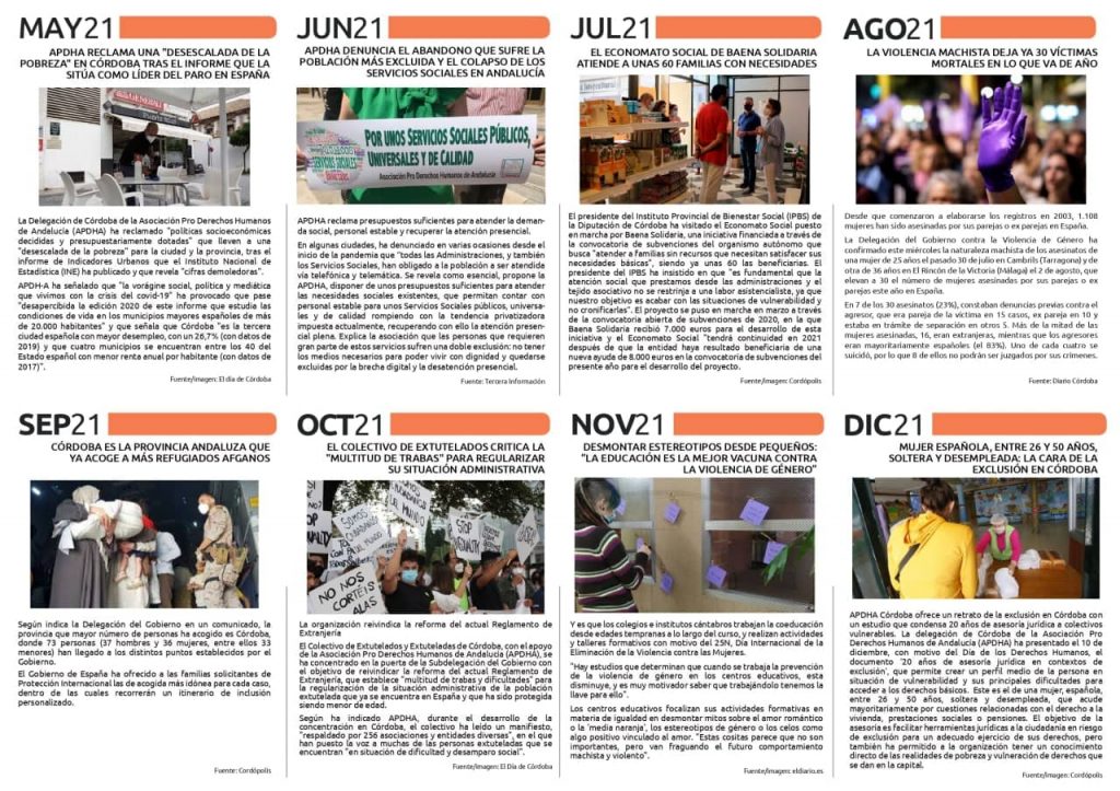 Con motivo del día internacional contra la discriminación, la delegación de APDHA en Córdoba ha presentado una nueva edición del “Calendario contra de la discriminación”, donde se ponen de relieve las principales situaciones discriminatorias acaecidas en la provincia durante el pasado año 2021.