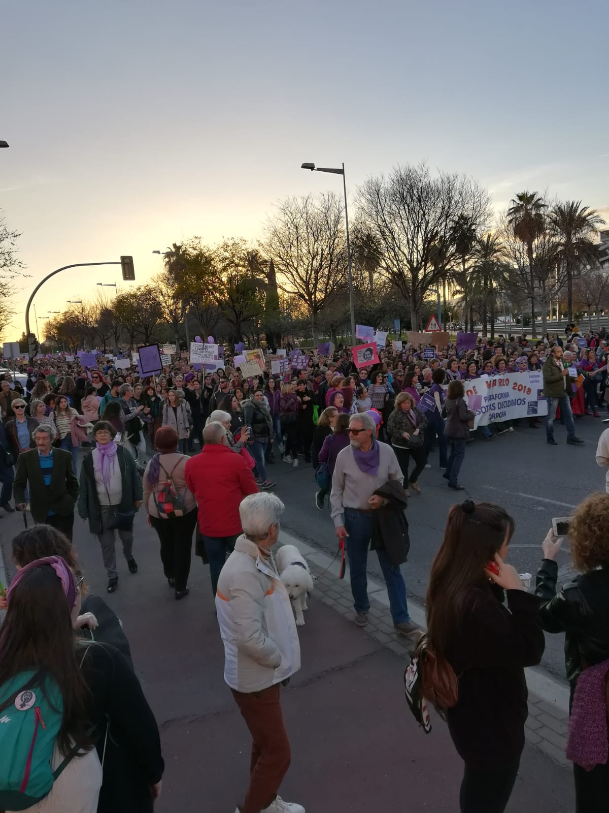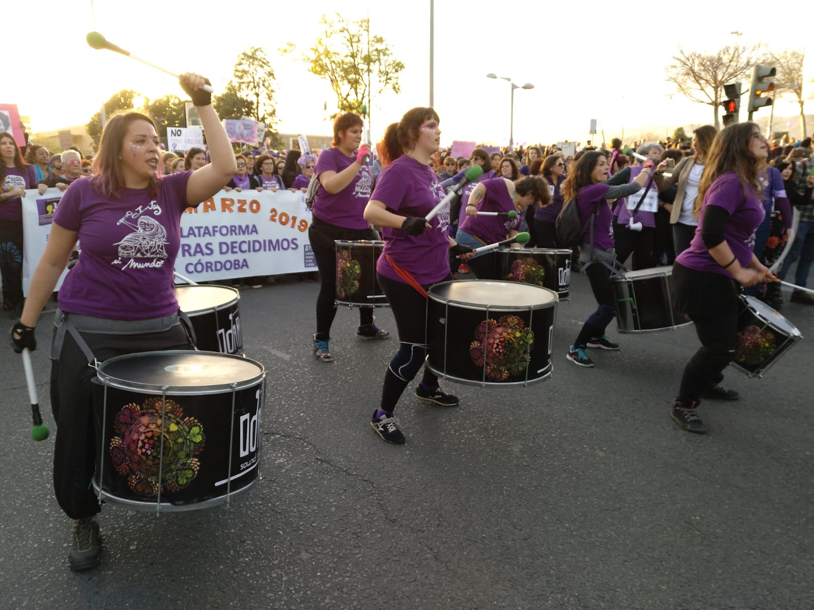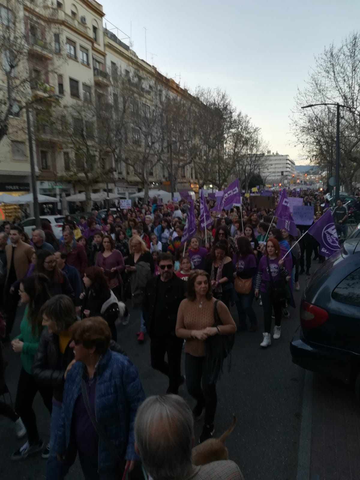 Córdoba se convirtió anoche en oleadas y mareas feministas, una riada, un mar feminista inundaba las calles y llenó todos los rincones del centro. 20.000 personas, según datos de la Policía local. Las mareas llenas de color y vida, reivindicación y esperanza, empezaron a llenar la Plaza de las Tres Culturas desde las seis de la tarde. La plaza rebosaba de gente, mujeres y hombres, de todas las edadaes, con mucha participación jóven, daba alegría verlo. Sonaban los tambores de guerra de la Batucada de mujeres que acompañó la marcha reivindicativa, tambores de una guerra pacífica, declarada al machismo y patriarcado.