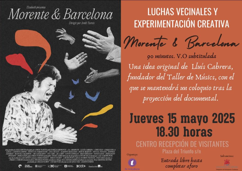 Morente & Barcelona es un documental de 90 minutos que será proyectado en versión original subtitulada. Dirigido por Jordi Turtós, sobre una idea original de Lluís Cabrera, fundador del Taller de Músics de Barcelona, que estará presente para un posterior coloquio al finalizar la proyección.