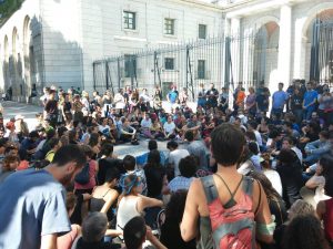 Mientras se ocupaba este lugar, se levantó una acampada frente al Ministerio de Transición Ecológica. En media hora habíamos levantado unas 40 tiendas de campaña, preparado la zona de cocina y organizado espacios para talleres, asambleas, descanso, etc.