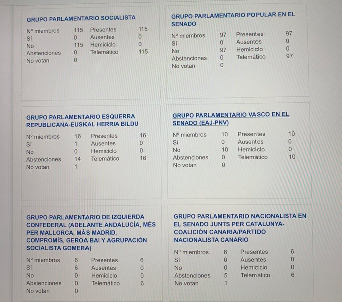 Votación en el Senado para la declaración como Parque Natural de la Sierra Bermeja. Fuente: @antoniomanuel__