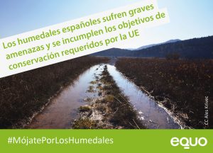 Asimismo, la formación ecologista ha recordado que, en España, las cifras más recientes disponibles constatan que más del 60% de la superficie original de zonas húmedas había desaparecido. Por ello, EQUO ha reclamado recientemente en el Congreso de los Diputados la protección real de estos espacios a través de cinco medidas prioritarias. Medidas como proteger el territorio para evitar agresiones urbanísticas en el entorno de los humedales, perseguir de manera efectiva la extracción ilegal de agua para riego en los acuíferos de los que dependen los humedales, impedir la liberación y expansión de especies exóticas invasoras en zonas húmedas, aumentar las medidas de prevención de la contaminación evitando los vertidos y el uso de sustancias tóxicas en las zonas agrícolas colindantes, y combatir el cambio climático para evitar que se agrave la actual tendencia de desaparición de zonas húmedas.