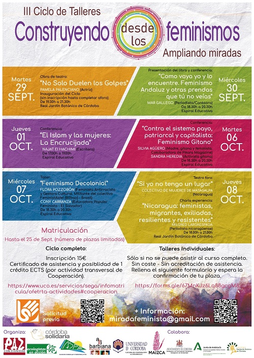 A partir del martes 29 de septiembre, comienza la III Edición de «Contruyendo desde los feminismo. Ampliando miradas», ciclo formativo organizado por diversos colectivos en conjunción con la UCO.