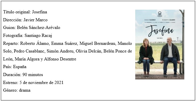 Un pretexto idóneo para mostrar la salvación a través de la sencillez de guion, de la humanidad y de la compañía flemática que, nos cuenta una historia de personajes que, pudiendo parecer banal y cotidiana, cala por dentro al mostrarnos una problemática tan importante como lo son las carencias emocionales y afectivas (comunicación, soledad…), el derecho a volver a ser feliz a través de la redención y la impotencia por no poder ayudar a nuestros seres más queridos. Para mostrar todo esto es imprescindible la fotografía de Santiago Racaj que no solo nos muestra acciones tan cotidianas como cenar un trozo de tortilla recalentado en la cocina, esperar al autobús o pasear al perro -actividades tan banales pero necesarias para describir psicológicamente a los personajes- sino que lo hace a través del color desteñido y mediante el uso de la cámara estática donde enmarca a los personajes en habitaciones tan vacías como su interior, pudiendo comprobar así cómo los propios espacios engullen en ciertas ocasiones a los personajes que se encuentran perdidos. Aunque, hay que indicar que si bien Josefina parece un filme completamente triste, encontramos ciertas pinceladas de humor que acaban de completar la historia de esta película producida por White Leaf Producciones en coproducción con Hoja en blanco AIE y en asociación con Featurent y distribuida en España por Super8.