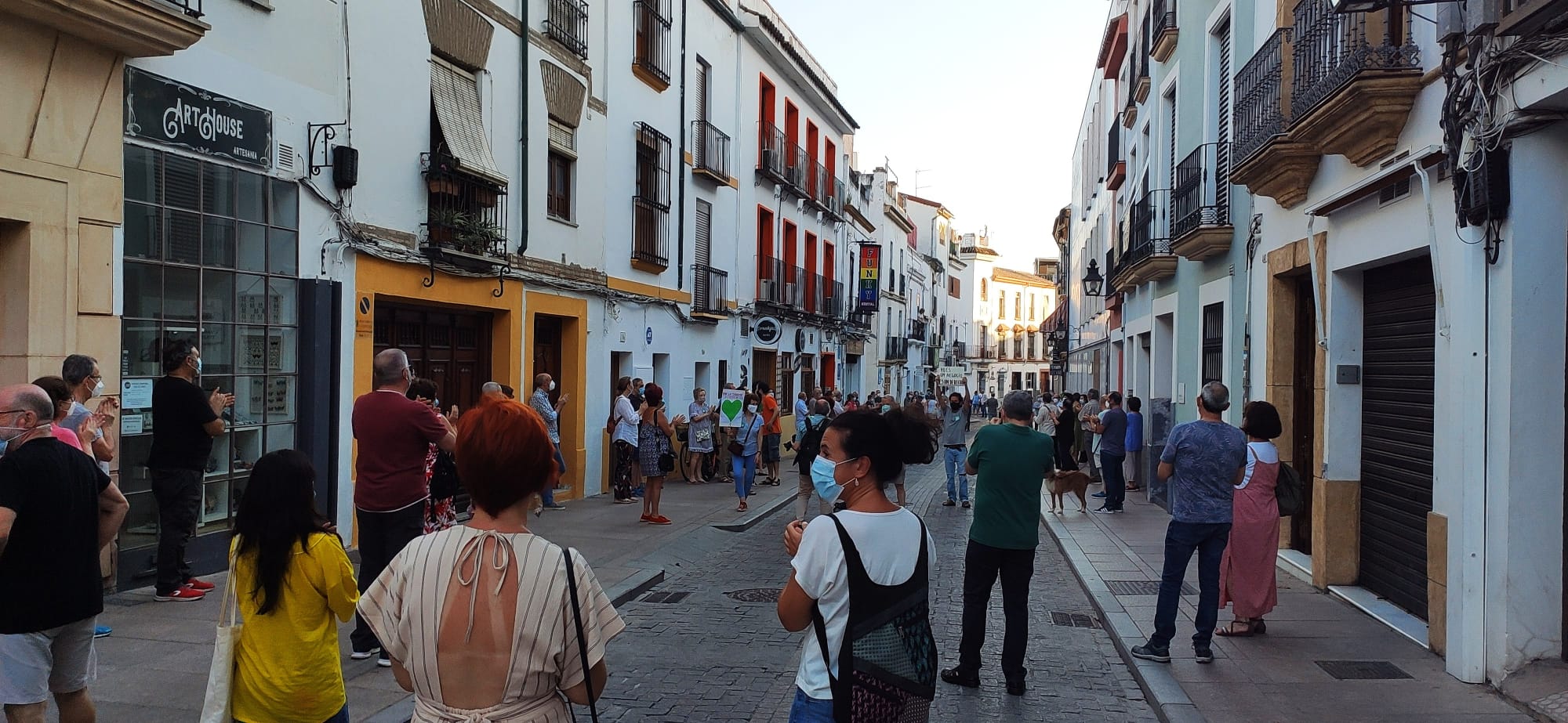 Ayer lunes, a las 20:30 horas, ataviados con mascarillas y guardando las distancias de seguridad, unas doscientas vecinas y vecinos de los barrios de la Axerquía se concentraron ante las puertas de su Centro de Salud, en la calle Lucano. Un largo aplauso fue la expresión simbólica de apoyo a los Servicios Públicos y concretamente a la Sanidad, al igual que se han venido haciendo desde que comenzó el estado de alarma por la pandemia del Covid-19.