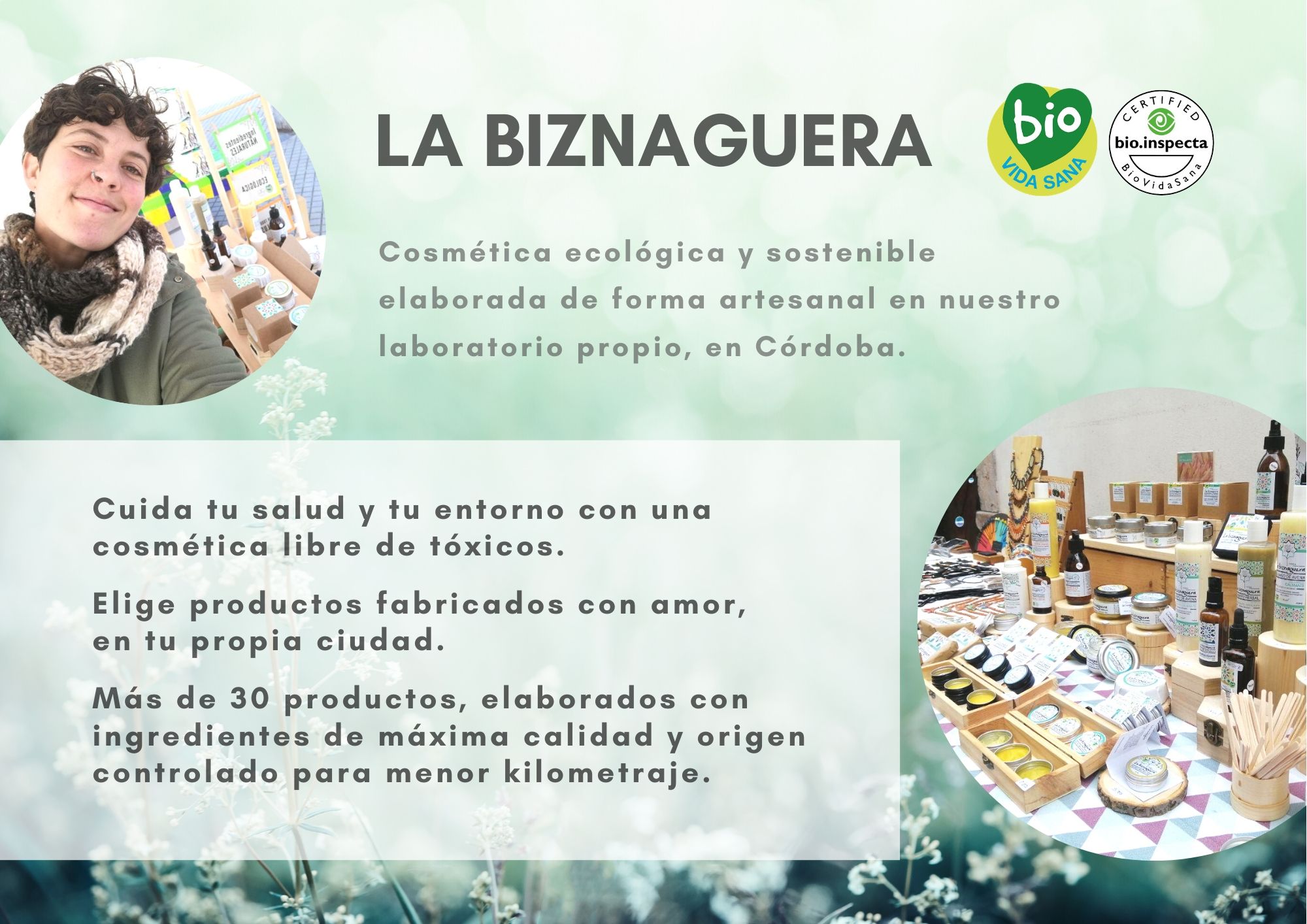 ¿Sabías que hay una marca de cosmética ecológica y artesana hecha en Córdoba? Sí, en el centro de nuestra ciudad se encuentra el laboratorio de LA BIZNAGUERA Cosmética Artesanal Sostenible, donde Helena, su fundadora, formula, elabora, etiqueta y comercializa con amor y agroecología cada uno de los 38 productos de su catalogo.