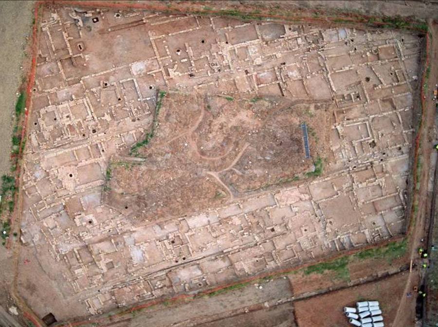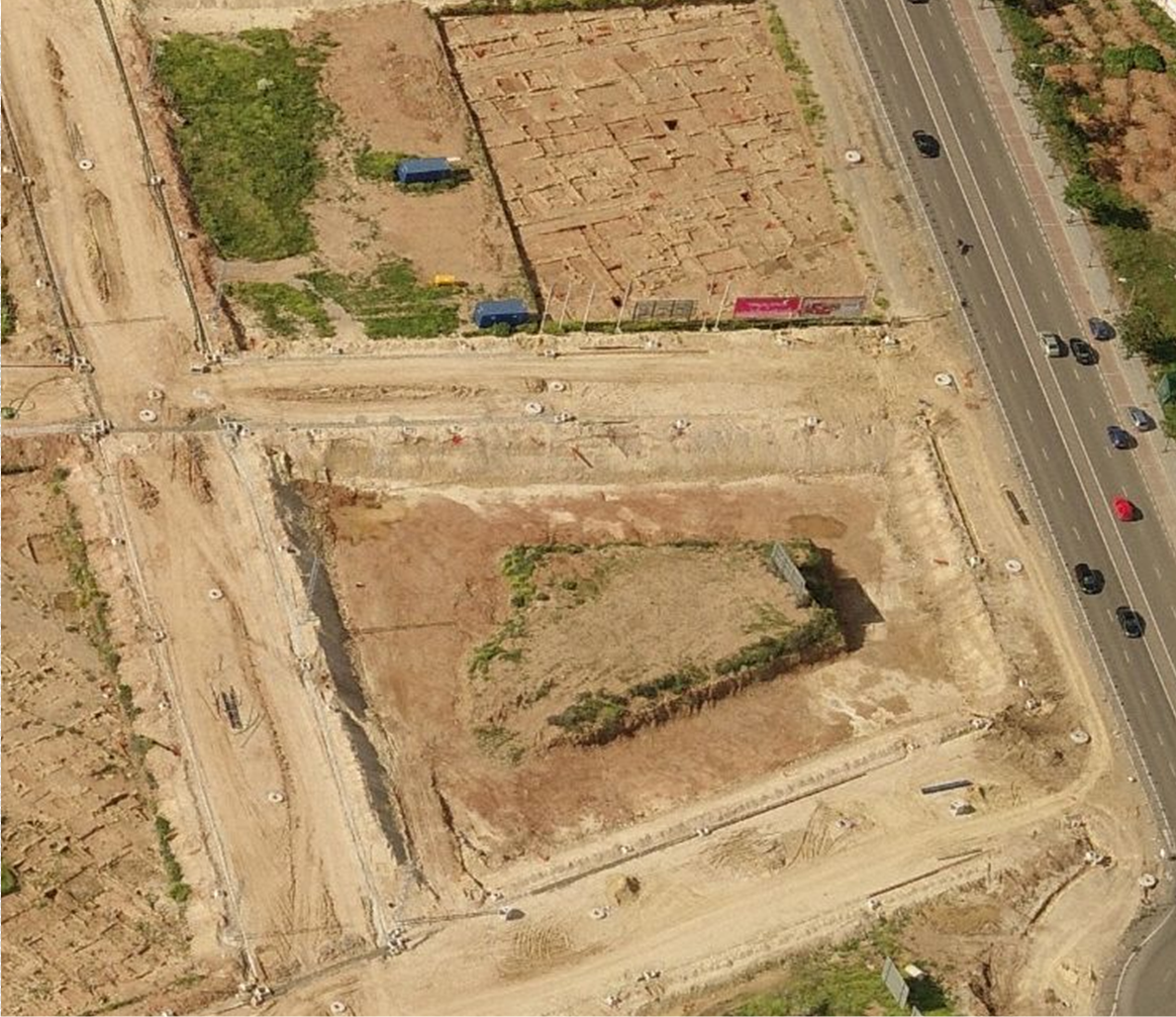 Vista aérea de yacimiento arqueológico en el PP-O7 (arrabales Occidentales) antes y después de su destrucción.