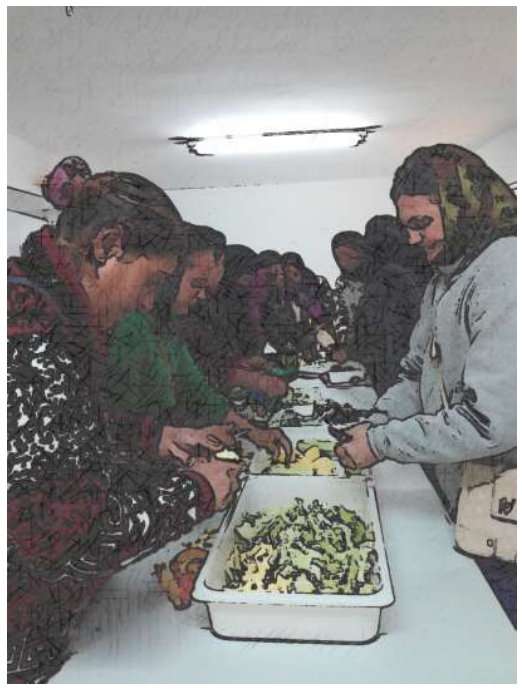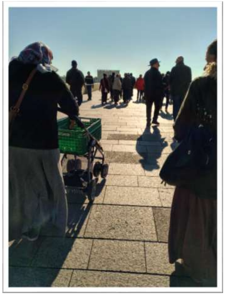 Los viajes solían hacerlos las madres en grupo, mujeres cargadas con bultos, que sostenían en fardos de tela de saco, atados al cuello o al hombro, hacían juntas el viaje a la capital para sentirse acompañadas y protegidas. De los menores se encargaban aquellas que ese día no les tocaba viajar, ellas les atendían e incluso les