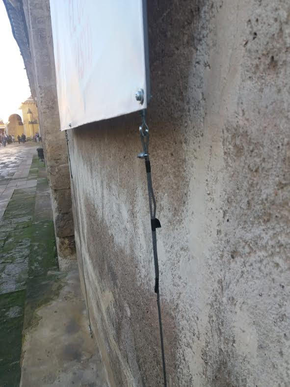 Muestra fotográfica de carteles atornillados a los muros de la Mezquita Catedral: