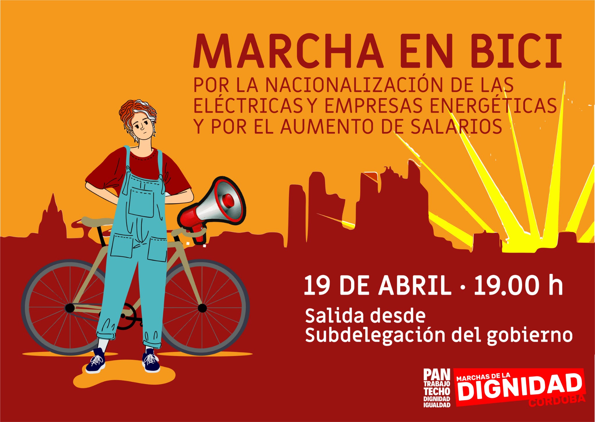 Esta tarde, desde la Subdelegación del Gobierno, las Marchas de la Dignidad celebrarán un recorrido en bicicleta por toda la ciudad. Saldrán a las 19’00 horas, como acción previa informativa sobre la que también convocan para el jueves día 21, a las 19’00 en el Templete del Bulevar de la Avda. del Gran Capitán.