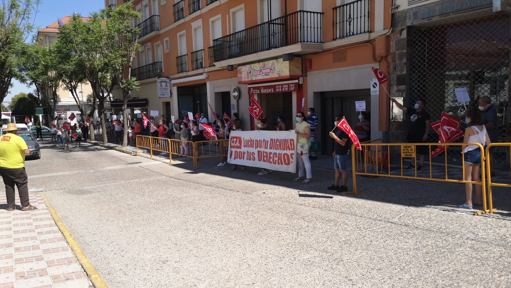 Ayer sábado, a las 12 de la mañana las trabajadoras de la Ayuda a Domicilio de Montilla, que se encuentran en huelga desde el 12 de marzo por la explotación de la empresa adjudicataria, MONSECOR S.L., se manifestaron a pesar de las altas temperaturas que caían a esa hora sobre la Campiña cordobesa.