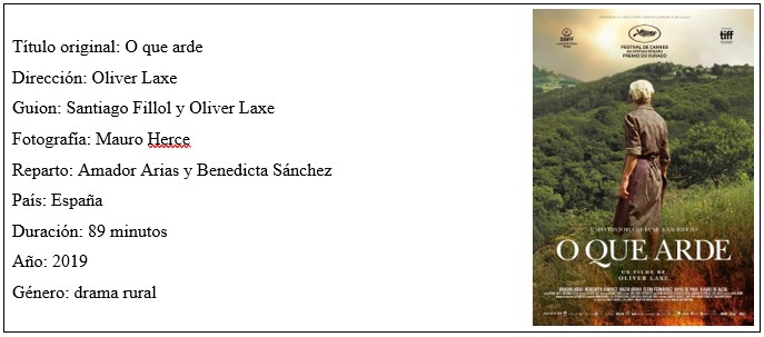 Cabe señalar que la mayoría de filmes del nuevo cine gallego ahondan en el vínculo entre el ser humano y la naturaleza como rasgo definitorio de la propia idiosincrasia. La obra de Laxe plasma en imágenes los últimos vestigios de un mundo en vías de desaparición, un peligroso universo que vive en constante equilibrio entre el modo de vida tradicional y la posibilidad de abrir nuevas perspectivas hacia el futuro, lo cual se puede extrapolar a la amplia España rural. En este punto cabe indicar que pese a estar Lo que arde rodada en gallego, lengua cooficial, podemos ver que tanto por esto como por su estética y forma narrativa se y trata de una pieza audiovisual de autor que se aleja de los circuitos comerciales y que en el cine español no es habitual que llegue a tener un estreno más o menos masivo en todo el país, llegando en algunas ocasiones a doblarse al castellano porque de esta manera parece más sencillo que una mayor cantidad de público acuda a las salas. Por tanto, se trata de un cine a contracorriente, un cine alejado del ámbito comercial y que presenta una marcada huella de autor.