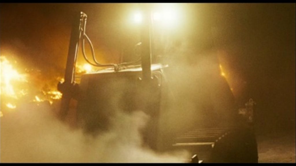El espacio rural no solo aparece amenazado por el desgarrador fuego sino que es la mano humana la que está destrozando la zona –bulldozers– junto al futuro turismo que quieren traer a la zona y del cual el protagonista señala que “llenar esto de turistas, ¿qué puede tener de bueno?”; pudiendo comprobar en ello cómo los espacios rurales se sienten amenazados para subsistir por las transformaciones aceleradas que impone la Modernidad, encontrando en estas mutaciones del medio. Así es como asistimos a un paisaje rural que actúa como testigo y cómplice a la misma vez de la huella humana y su carácter destructor, ya sea del medio rural como de sus habitantes y donde las largas secuencias de trayectos en coche sirven para señalar el aislamiento de los pueblos o aldeas de España, contribuyendo a configurar un universo ajeno, un poco exótico y a veces peligroso.
