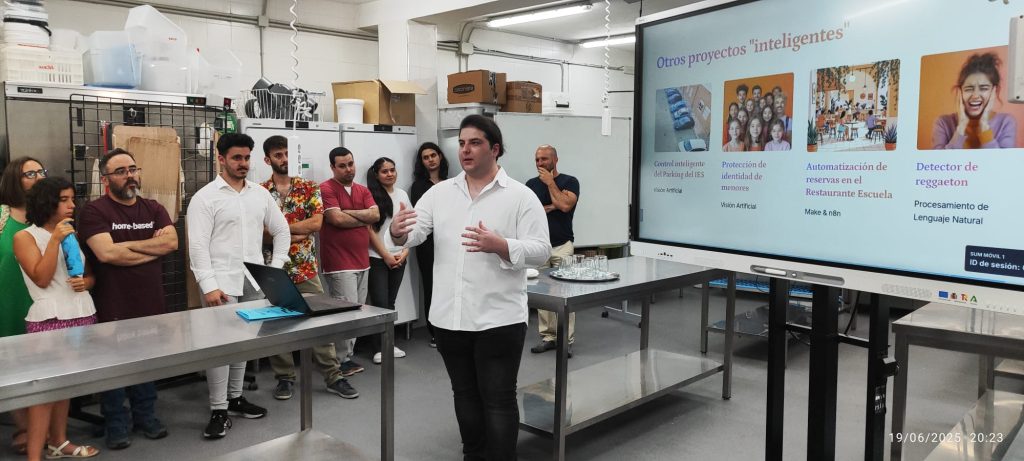 Pero no fue el único proyecto que los alumnos desarrollaron durante el curso, también expusieron otros programas “inteligentes” como un control del parking del propio instituto, una aplicación basada en visión artificial capaz de reconocer rostros de menores (con el objetivo de pixelar las imágenes y proteger su identidad), otra aplicación para la automatización de las reservas en el restaurante de la escuela y una muy curiosa que bautizaron como el “detector de reggaetón”, capaz de determinar si una canción pertenece a este género a través del procesamiento de lenguaje natural.