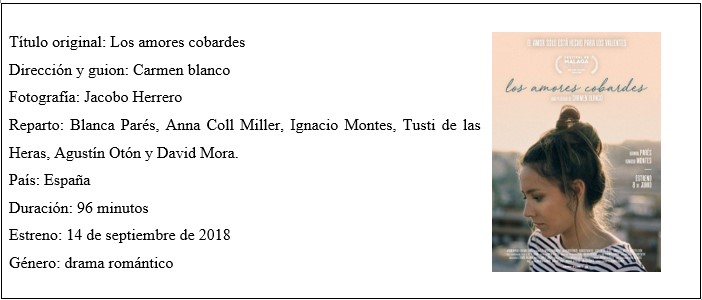 Desde el propio título –Los amores cobardes– se nos muestra esa falta de valor para tomar decisiones que nos hacen olvidar y superar cicatrices internas y que no tomamos por miedo, un miedo que nos hace anclarnos aún más en ese vacío sentimental lleno de inseguridades y de `cobardía´. También podemos ver en la frase final del propio tráiler la frase “el amor solo está hecho para los valientes” volviendo a hacer alusión a la trama de la historia.