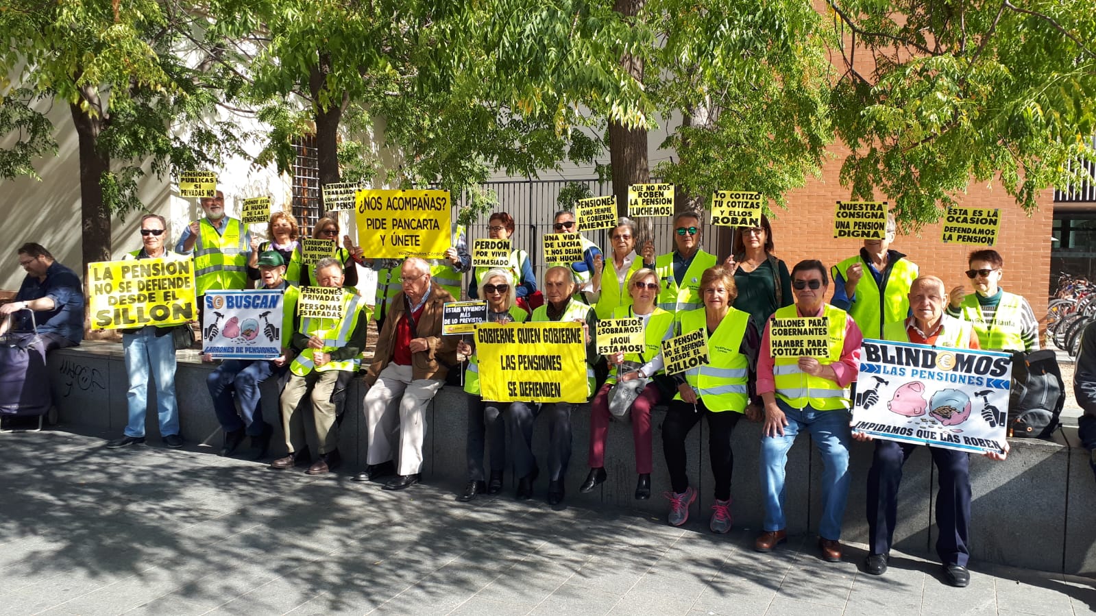 Este lunes el Colectivo estuvo repartiendo octavillas y portando pancartas denunciando la práctica del neoliberalismo de desmantelar el Estado de Bienestar, algo que vivieron en primera persona en tiempos de Margaret Thatcher, quien afirmó que “La sociedad no existe, sólo existen individuos. El Estado ha de intervenir en la economía en favor de los negocios, privatizando todo lo que pueda servir para ello.» Y, claro, privatizar las pensiones total, o parcialmente al principio, es un buen bocado.