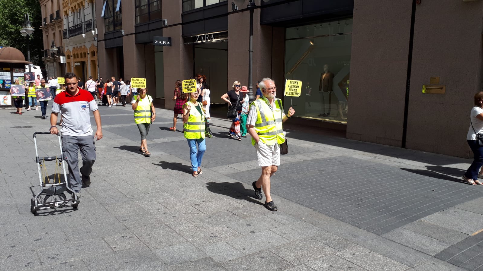 • Las y los Yayoflautas Córdoba salieron este lunes a la calle a denunciar la violencia de género.