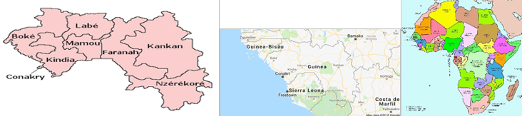 Guinea Conakri limita con Guinea Bissau y Guinea Ecuatorial al Norte, con Mali, también al Norte, y al Noreste, con Costa de Marfil al sureste y con Liberia al sur y Sierra Leona al oeste. Su idioma es el francés, ya que fue durante mucho tiempo, colonia francesa (Guinea francesa). Tiene un clima tropical (Junio-Noviembre), es la estación lluviosa, tipo monzón; el mes más caluroso es mayo (24-35º C), el más frio es agosto (22-28º C), el más lluvioso es Julio, y el más seco Enero.