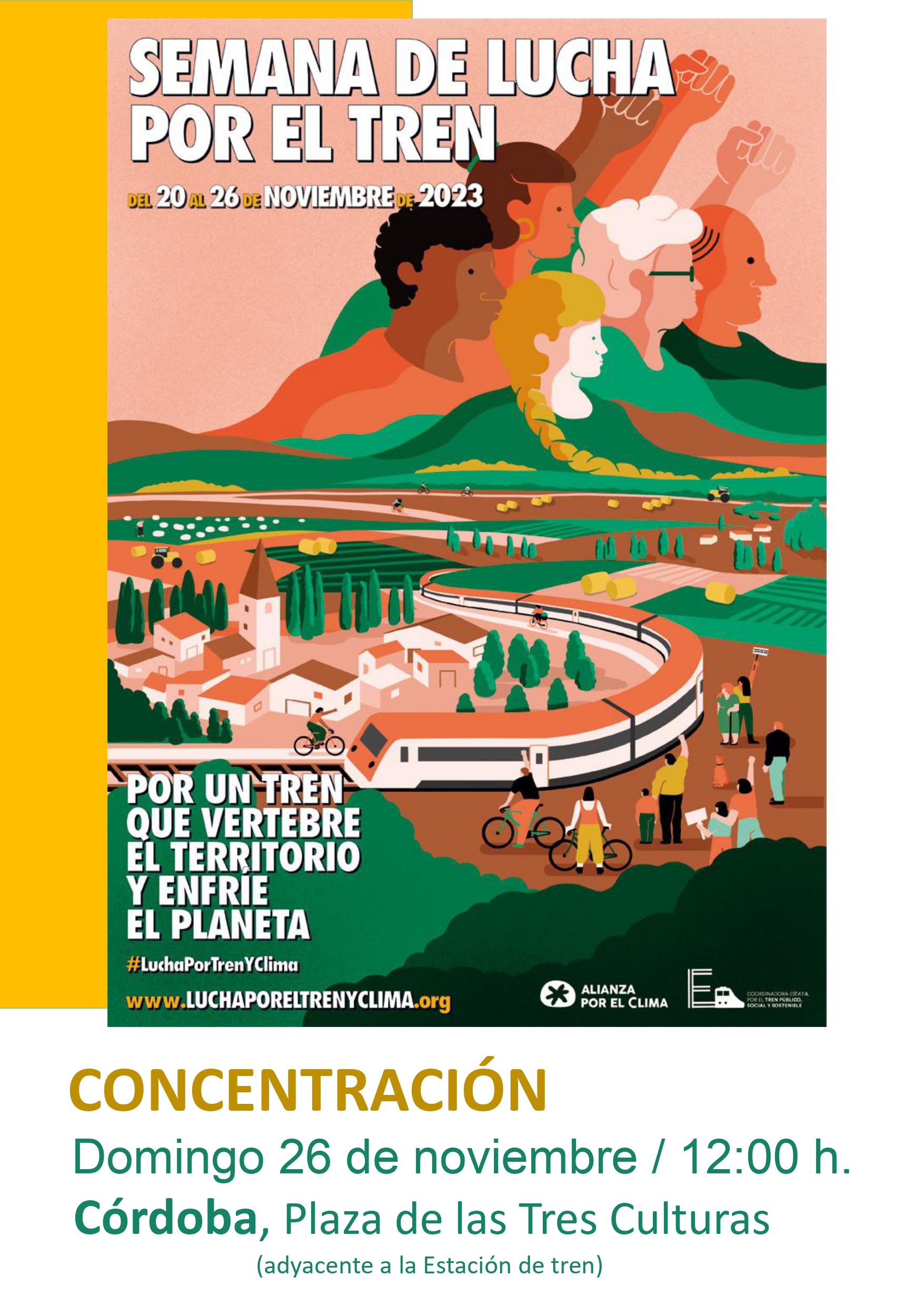 La Semana de Lucha por el Tren se enmarca en la campaña Tren y Clima. Una iniciativa orientada a crear un espacio de confluencia entre colectivos de diverso tipo en favor de una mayor vertebración del territorio y reducción de emisiones mediante la promoción del ferrocarril convencional.