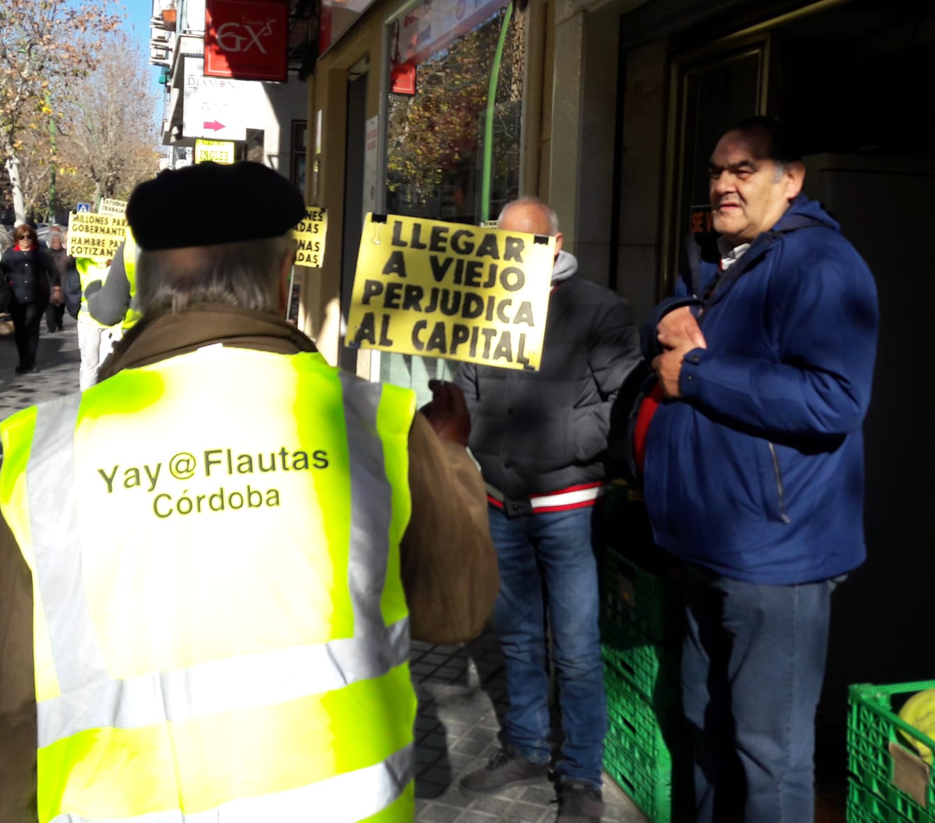 El pasado sábado, Yay@flautas de Córdoba estuvo en vanguardia en la concentración pensionista de Las Tendillas, convocada por la Plataforma, y coordinada con la Estatal. Ayer alargamos su eco.