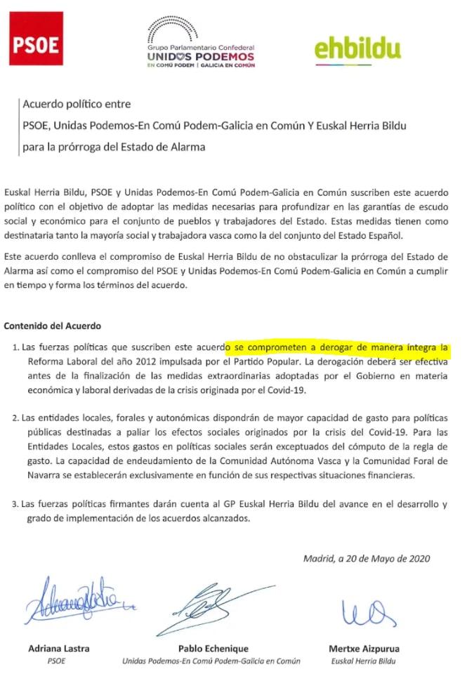 Acuerdo de derogación de la Reforma Laboral de 2012