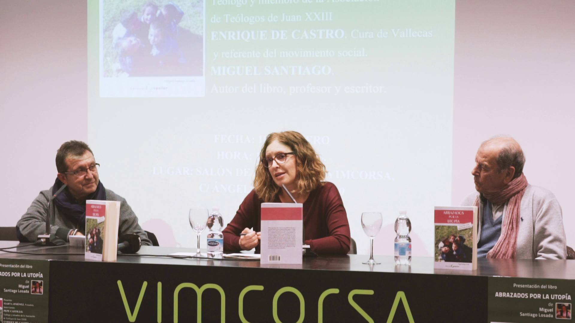 Pero hemos querido dejar aquí también el vídeo de la presentación de su libro. En ella estuvo acompañado de otra persona extremadamente comprometida y un ejemplo de coherencia, Enrique de Castro, el cura de Vallecas, amigo personal de Miguel. Para poner la guinda en el pastel, Marta Jiménez presentó el acto, llevándolo con la maestría, dinamismo y cariño característicos de ella.