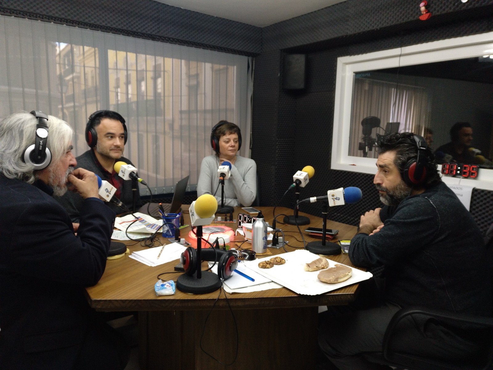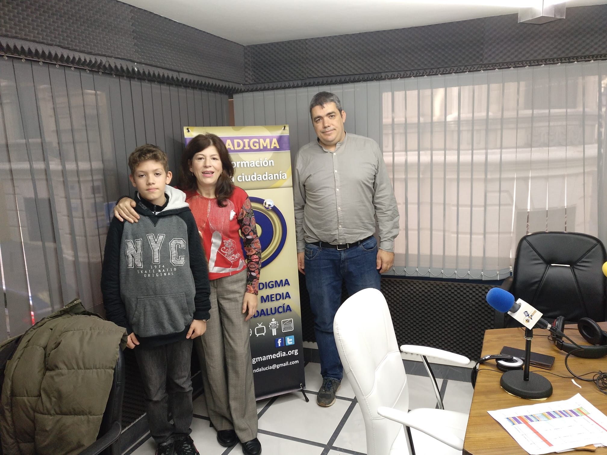 Como pueden comprobar en nuestra foto de portada, el estudio y el recibidor de nuestra emisora es un foro continuo de debate entre las personas que van participando en el programa. En la imagen, Juan Ariza Otano, un chico de 15 años, hablando ante la mirada atónita, por lo que dice y cómo lo dice, de Miguel Santiago, Pepa Pérez y Rafael Juan.