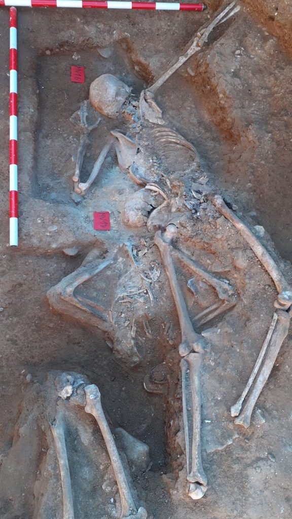 En la fosa, aún habiéndose excavado muy superficialmente al tratarse de un sondeo, nos refiere que se observa la existencia de enterramientos colectivos de personas, sin ataúd, en posiciones inverosímiles, con evidencias de muerte violenta (disparos de bala, fracturas perimortem, etc.), intentos de ocultación de identidad (como en el caso del individuo 17, cuyo rostro fue desfigurado postmortem con un bolo de cuarcita) y muestras de ensañamiento y deshumanización que alejan estos enterramientos del ritual normalizado (impactos por ser arrojados como fardos, colocación en prono, mantener maniatadas a las personas tras su muerte, solapamiento de los cuerpos, etc.). Todo ello puesto en relación con los artefactos asociados (proyectiles, mecheros, peines, calzado, cinturones,…) que analizados cronológicamente enlazan con el momento histórico referido.