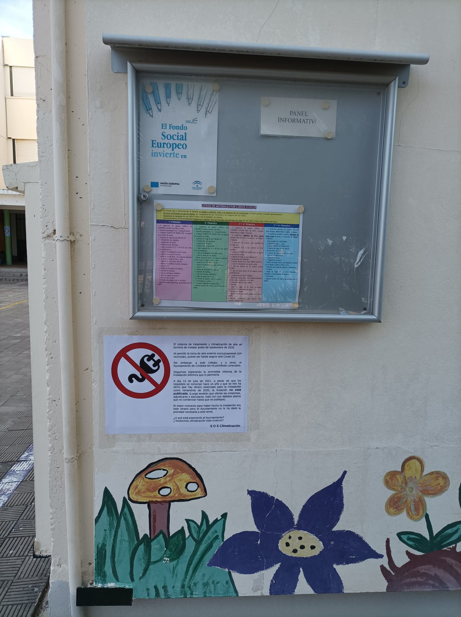 En muchas ocasiones no queda más remedio que comprobar cómo lo que sucede en nuestra comunidad quedaba perfectamente reflejado en las películas de Berlanga. Lo que ocurre en muchos colegios de nuestra ciudad es un claro ejemplo. SOS Climatización, es un grupo de Asociaciones de Madres y Padres de Alumnado (AMPA) de diez de los colegios afectados por esta situación. Se trata de las AMPA El cerro (CEIP Abderramán), AMPA Álamos blancos (CEIP Fernán Pérez de Oliva), AMPA Al-Andar (CEIP Hernán Ruiz), AMPA Juan de Mena (CEIP Juan de Mena), AMPA Santa Isabela (CEIP Los Ángeles), AMPA Nueva generación (CEIP Maimónides), AMPA Baleares (CEIP Mediterráneo), AMPA Mirasierra (CEIP Mirasierra), AMPA Muñices (CEIP San Lorenzo), AMPA El caimán (CEIP Santuario), y AMPA San Fernando (CEIP San Fernando).