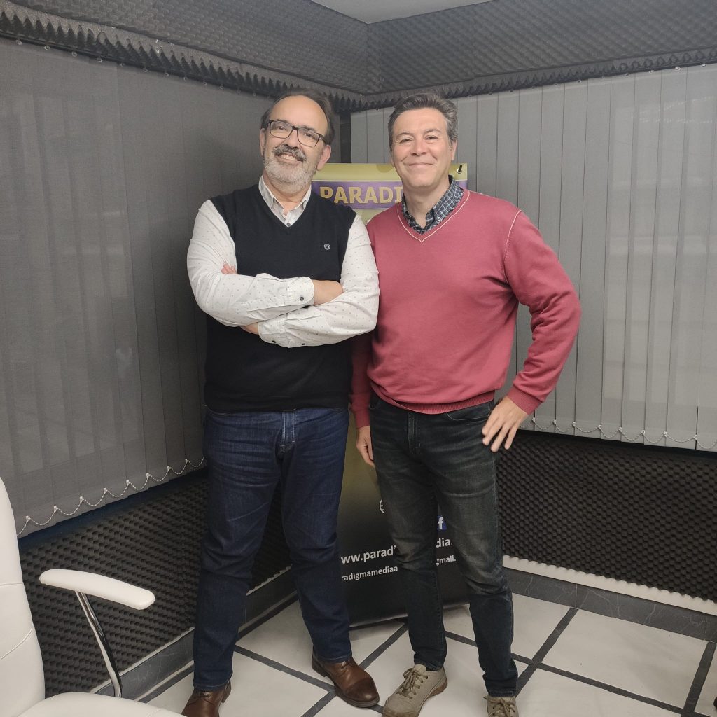 Enrique Rodríguez en el micrófono y Carlos Serrano en la técnica, desde el Estudio Félix Ortega de Paradigma Radio, en la tarde del primer jueves de la recién estrenada primavera.
