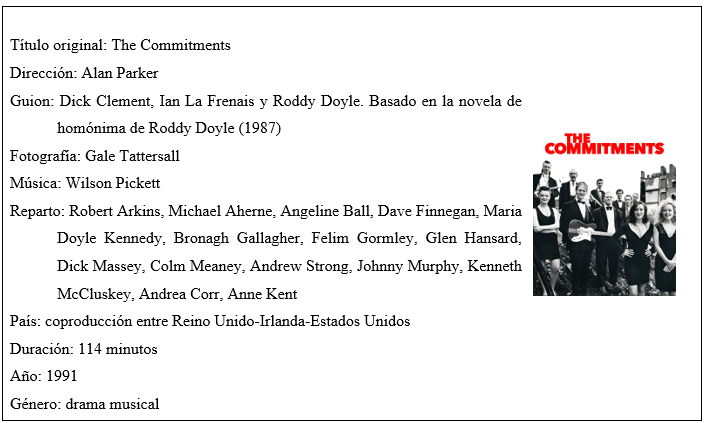 La música es uno de los medios artísticos que más fácilmente llega al alma del receptor, ya que no necesita ni letra, tratándose así de un lenguaje universal superior comunicativamente. En el caso de The Commitments, podemos comprobar como lo más importante es su función expresiva que es capaz de articular los discursos identitarios de los personajes y su posicionamiento como sujetos en un espacio, lo cual nos lleva a un filme donde mostrar el cómo se dice -mediante movimientos rítmicos, letras trasgresoras o actitudes liberales- que el qué -las entrevistas ficticias de Jimmy donde casi no se dice nada-; hecho que es una gran descripción del soul en la actualidad.