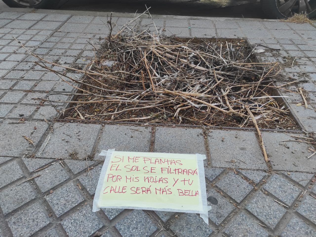La sensibilidad hacia los árboles de la ciudad y el aumento de toma de conciencia de los efectos de la crisis climática y la subida de temperaturas son el cóctel que ha llevado a algunas personas a poner carteles y otros avisos sobre la necesidad de un arbolado abundante, sano y cuidado en la ciudad.