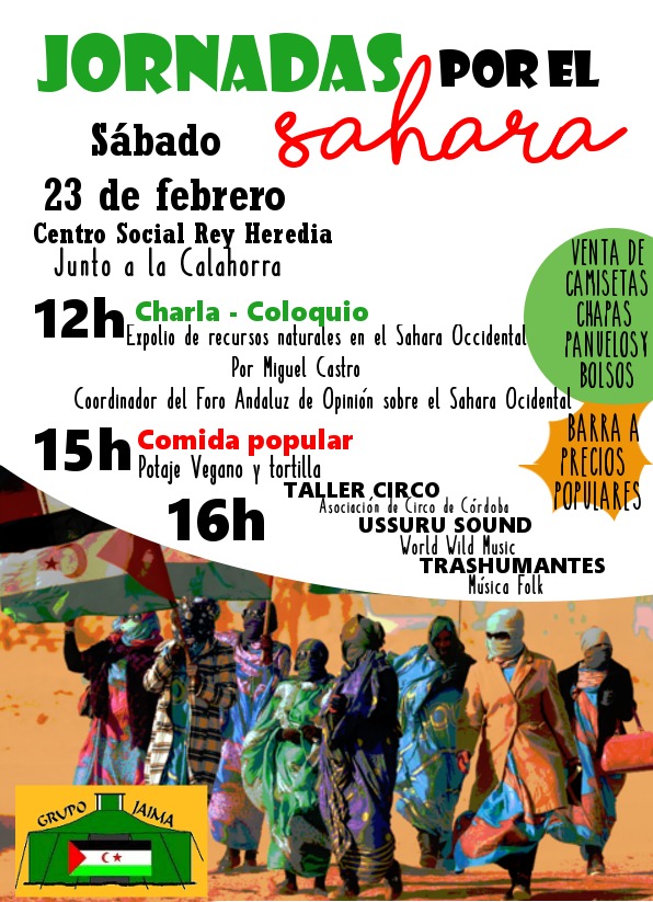 Ruth Espieg, miembro del Grupo Jaima, nos atiende por teléfono para contarnos las jornadas de hoy, sábado 23 de febrero de 2019, en el Centro Social Rey Heredia, en el que se desarrollarán diversas actividades para explicar el programa «Jóvenes por el Sahara».